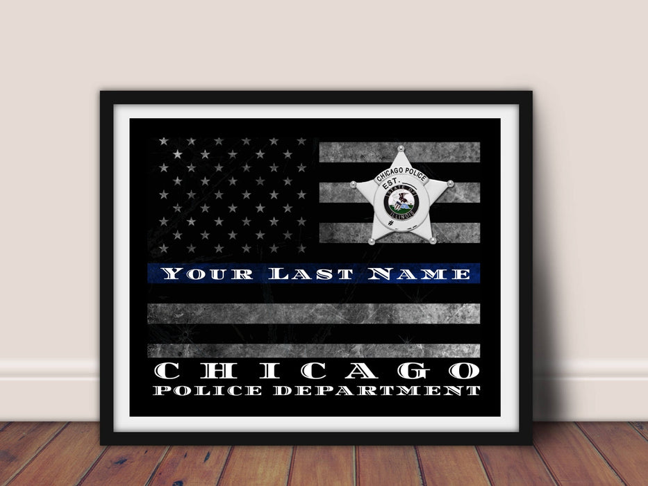 Celebrate the dedication of law enforcement with our Chicago Police Department Thin Blue Line Wall Art. This custom, personalized framed artwork serves as a tribute to the brave officers of the Chicago Police Department, making it a meaningful addition to your home decor or a thoughtful gift for a loved one.