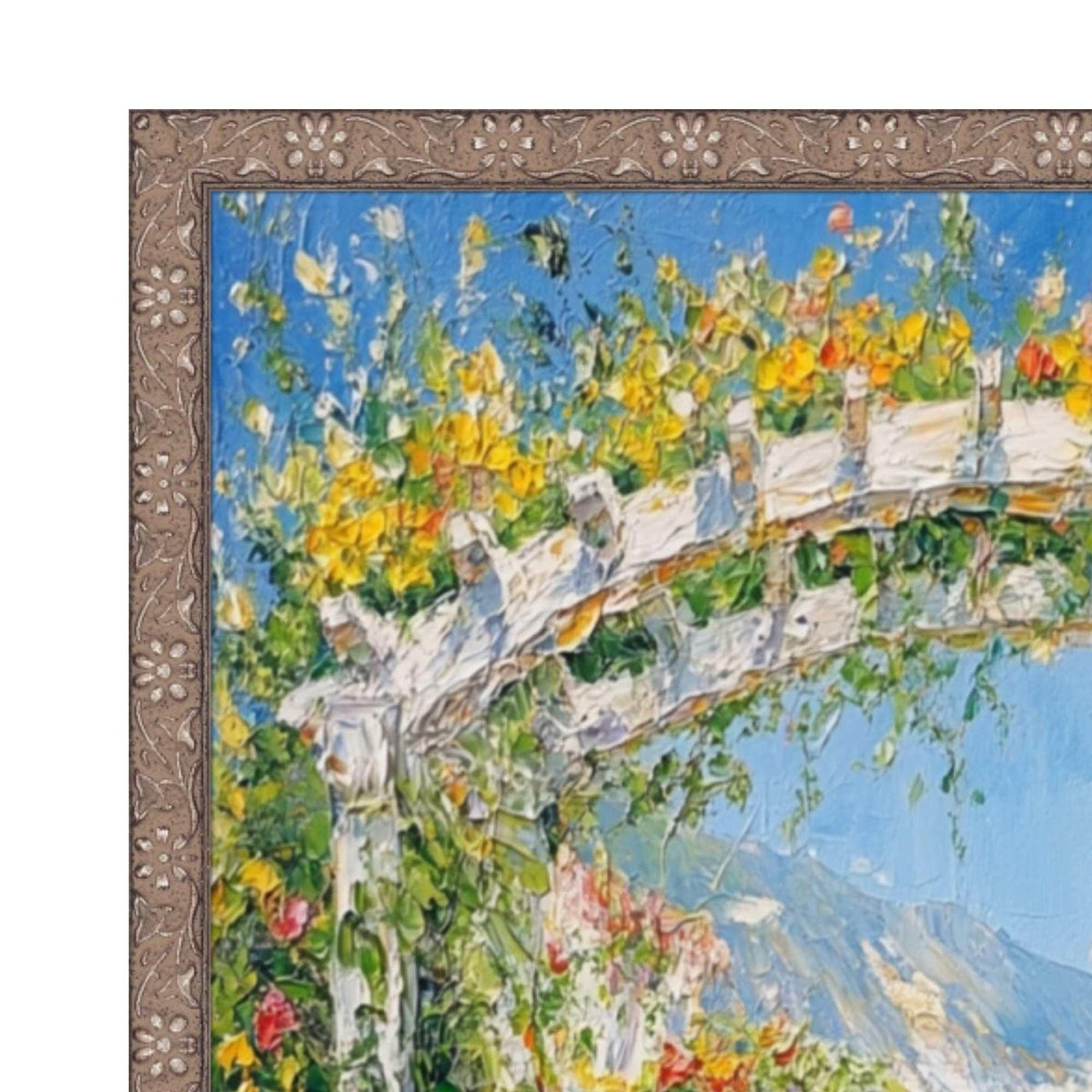 • Custom Frame Design: Featuring a rounded beaded front profile, this custom frame is adorned with a luxurious, gold leaf finish, adding a touch of elegance to your decor.