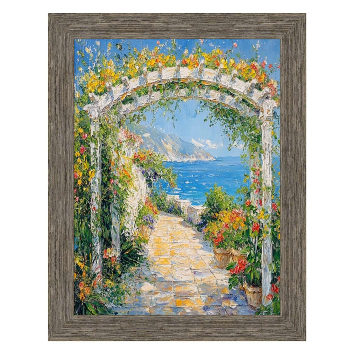 • Custom Frame Design: Featuring a rounded beaded front profile, this custom frame is adorned with a luxurious, gold leaf finish, adding a touch of elegance to your decor.