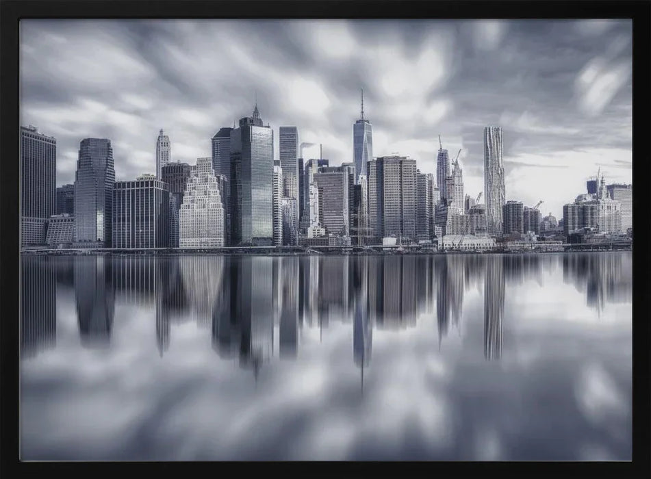 Transform your home or office space with this striking framed art print that beautifully captures the reflection of Manhattan, crafted by artist Michael Zheng. Measuring 24x36 inches, this artwork is available through our custom frame shop and is made with premium materials, ensuring both longevity and a classic look. The high-quality frame not only offers stability but also enhances the visual appeal of the piece, while the archival-grade paper is designed to resist fading, allowing you to appreciate this captivating scene for years to come.
