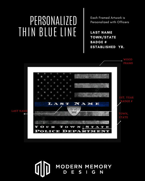 Expertly Design Personalized Frames for Memories Worth Showcasing. Each Thin Blue Line and Thin Red Line Art Prints for Police Officers and Firefighters by ModernMemoryDesign.com is perfect home wall decor or gift idea