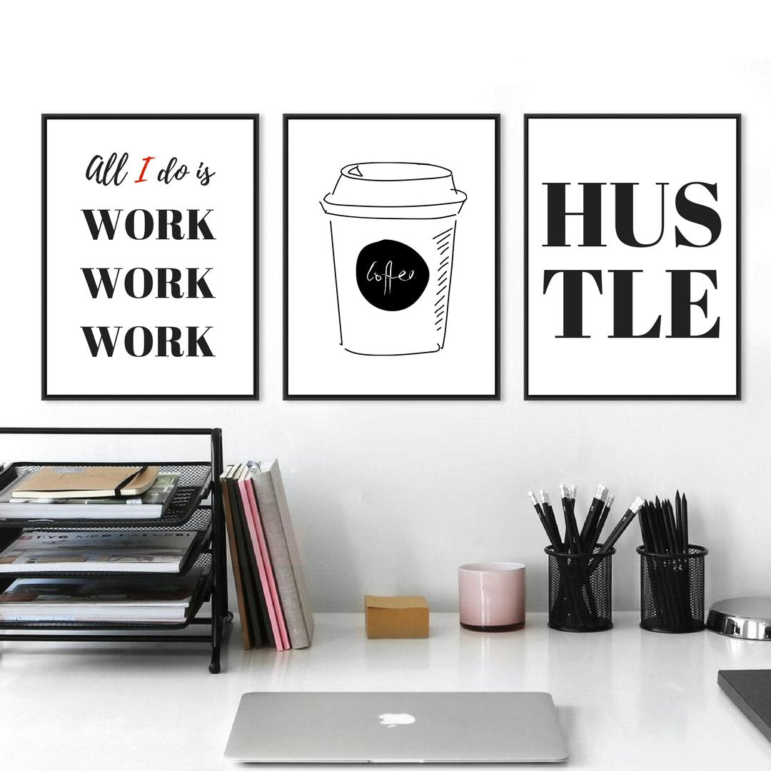 Motivational Coffee Hustle Art Print Set of 3 for Home or Office Decor