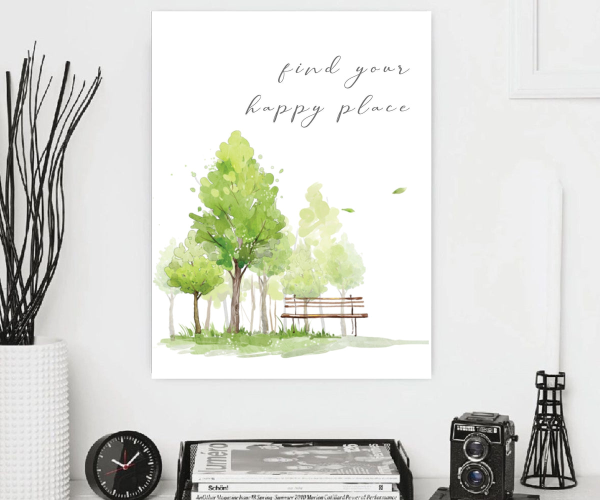 Turn your home wall decor into a work of art with this Happy Place wall art print. This high-quality wall art print will complement any room in your home. Handcrafted in the Lodi, New Jersey, this artful image is printed on an artist-quality material using UV-resistant archival inks. Ready to hang once delivered, this piece arrives fully assembled stretched on wood bar ready for wall-mounting on your wall.