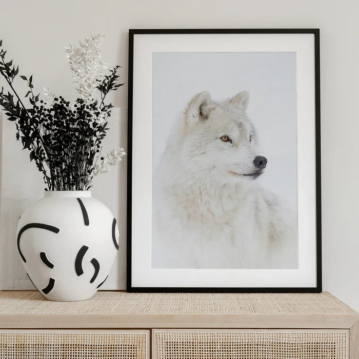 Experience the perfect harmony of artistry and durability with this exquisite Framed Arctic Wolf Portrait from ModernMemoryDesign.com, and let your space resonate with sophistication and inspiration.