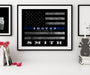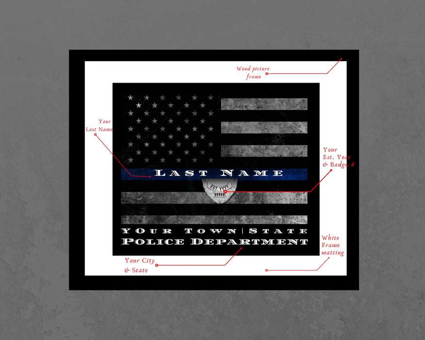 Expertly Design Personalized Frames for Memories Worth Showcasing. Each Thin Blue Line Art for Police Officer Retirement or Graduation Gift by ModernMemoryDesign.com is perfect home wall decor or gift idea